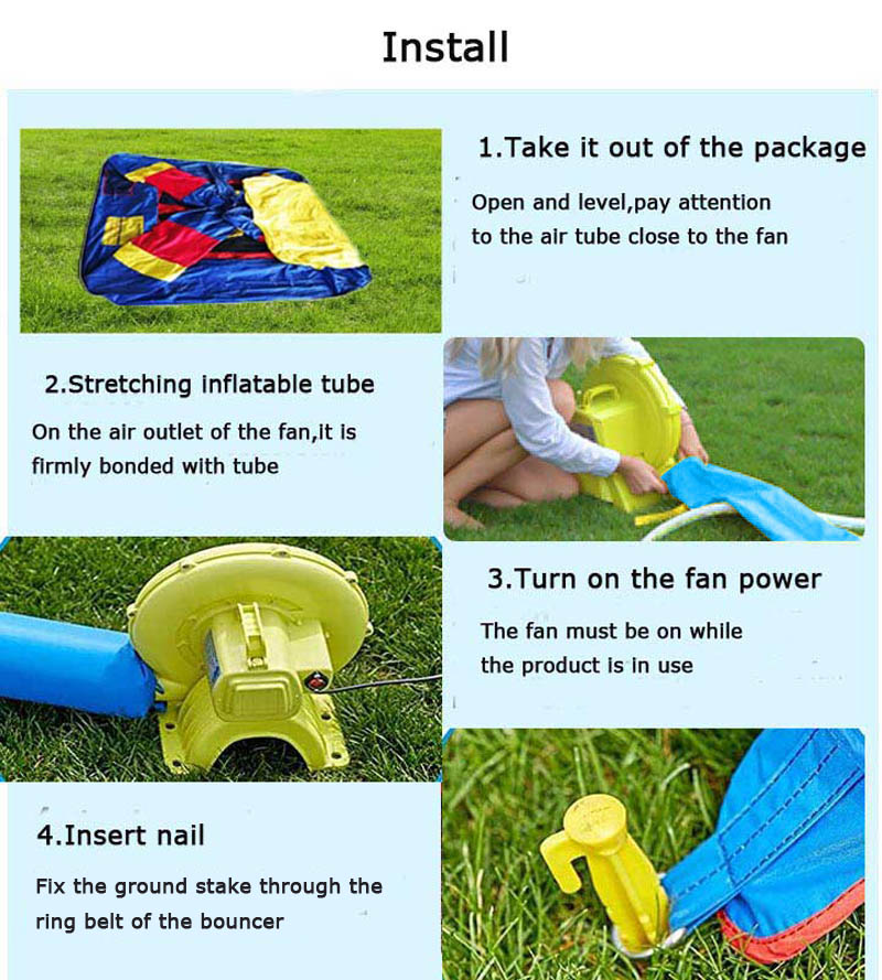 Die Hüpfburg mit Rutsche hat alles, was sich Ihr Kind wünschen könnte: leuchtende, attraktive Farben, Burgdächer, einen eingebauten aufblasbaren Basketballkorb und eine Rutsche. Die schöne Farbkombination macht die Hüpfburg zu einem Highlight und etwas Besonderem für Partys, Vergnügungsparks und Spielplätze. Dank ihrer kompakten Größe kann sie auch im Innenbereich, beispielsweise im Keller, an kalten oder regnerischen Tagen verwendet werden. Die ausreichend große Sprungfläche und die 1,52 m lange Rutsche werden Ihrem Kind viel Spaß machen.