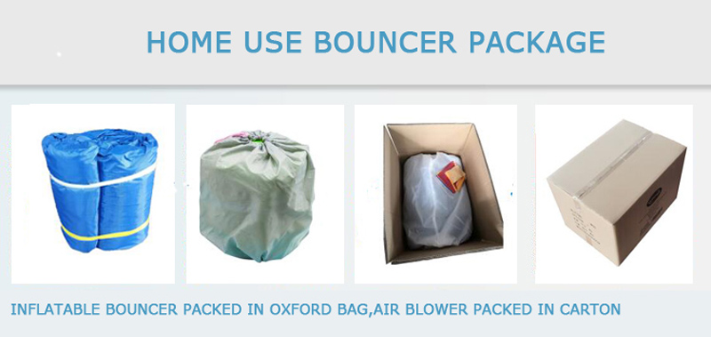 Die Hüpfburg ist in einer Oxford-Tasche verpackt, das Luftgebläse in einem Karton.